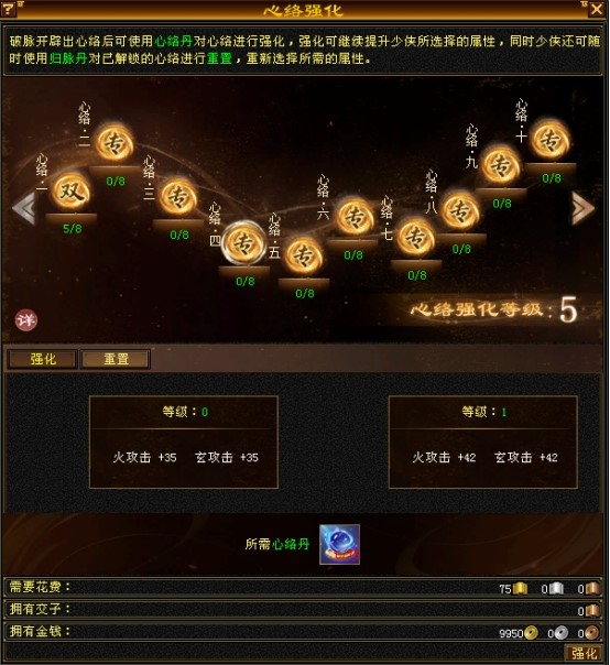 心络强化:开辟心络后可对心络进行强化,强化将持续提升开辟心络时所选的属性。